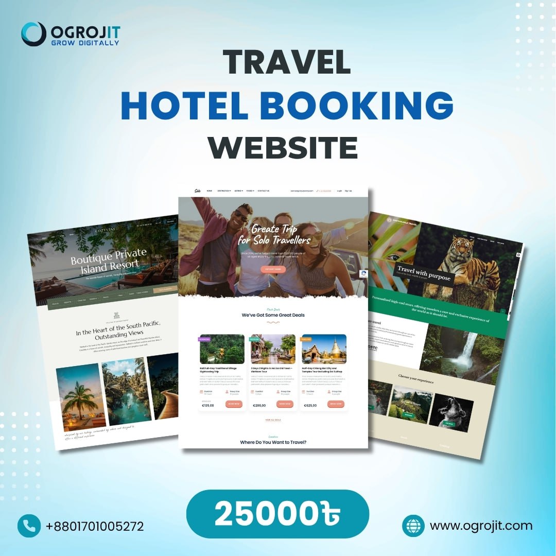 আপনার হোটেল বা ট্রাভেল এজেন্সির জন্য একটি প্রফেশনাল, ইউজার-ফ্রেন্ডলি এবং কার্যকরী বুকিং প্ল্যাটফর্ম তৈরি করুন। যেখানে কাস্টমাররা সহজেই রুম বা প্যাকেজ চেক করতে পারবেন, বুকিং করতে পারবেন এবং পেমেন্ট সম্পন্ন করতে পারবেন।